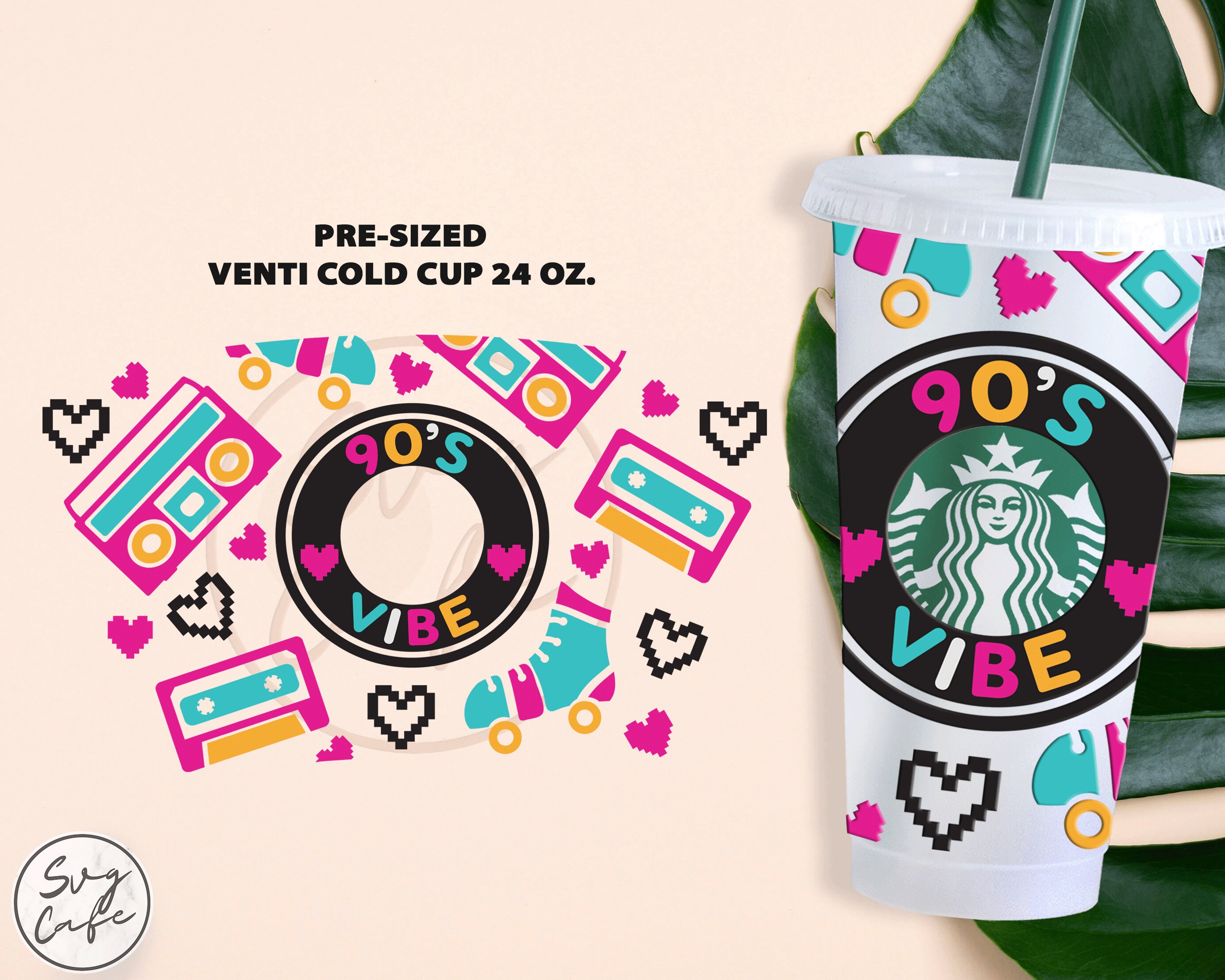 90 S Vibe 24oz Venti Cold Cup For Starbucks Cup Svg Dxf Etsy