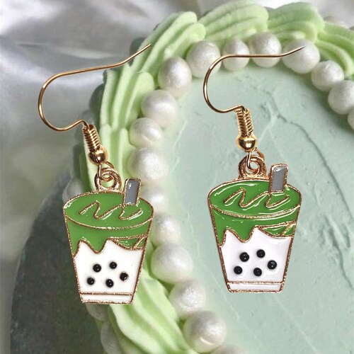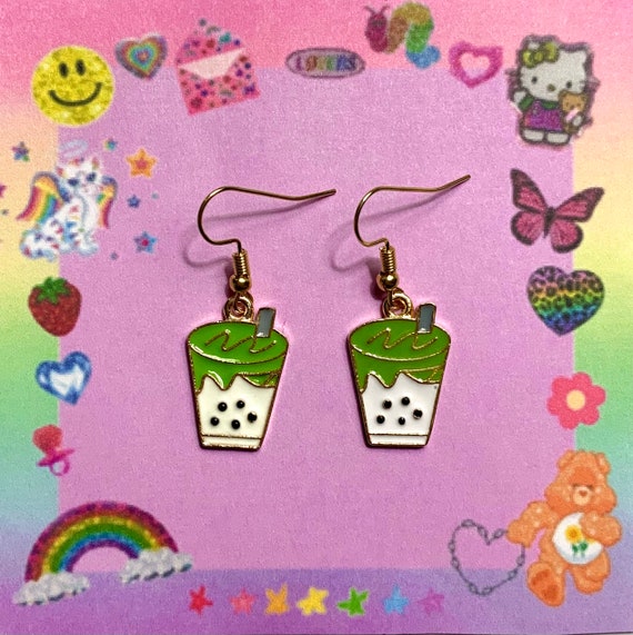 Matcha Bubble Tea Kawaii Aesthetic Earrings Etsy